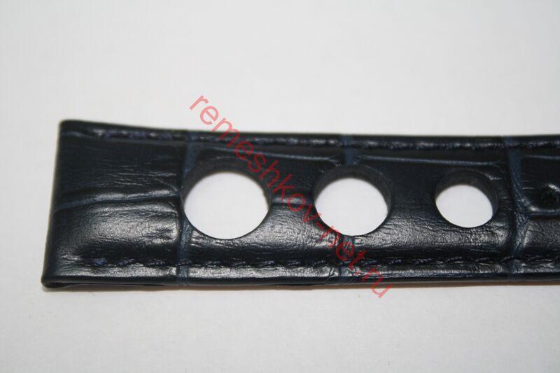 Ширина: 20мм, застежка 18 мм. Длина: L (удлинённый). Цвет: Темно-синий. С строчкой,большая перфорация. Цвет застёжки: Белая. Кожа телёнка. Имитация аллигатора.