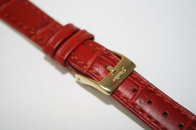 Ширина: 14мм, застежка 12 мм. Длина: М (стандартный) Цвет: Красный. С строчкой. Цвет застёжки: Желтая. Кожа телёнка. Имитация аллигатора.