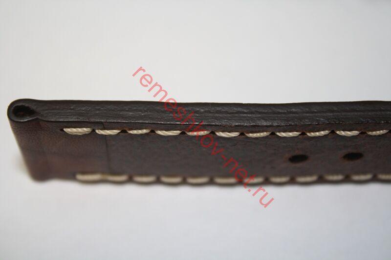 Ширина: 24мм, застежка 24 мм. Длина: М (стандартный). Цвет:Темно- Коричневый. С белой строчкой. Цвет застёжки: Белая. Кожа телёнка. Массивный ремешок.