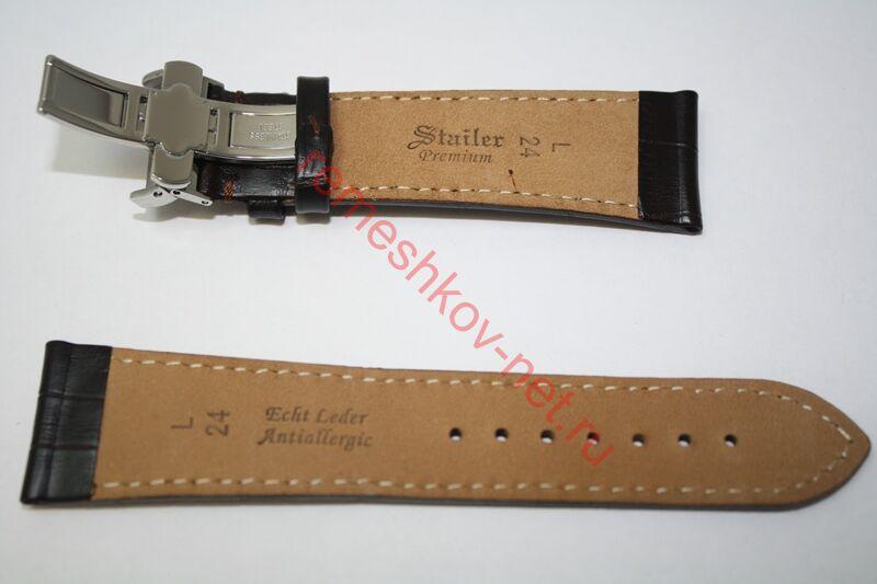 Ширина: 24мм, застежка 20 мм. Длина: L (удлинённый). Цвет: Темно- коричневый. С строчкой. Цвет застёжки: Белая. Клипса раскладывающаяся автомат. Кожа телёнка.
