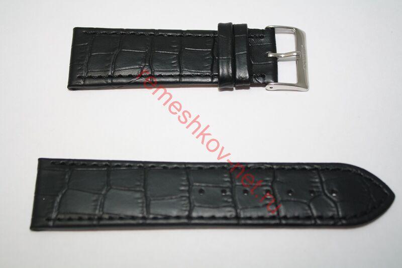 Ширина: 24мм, застежка 22 мм. Длина: М (стандартный). Цвет: Черный. С строчкой. Цвет застёжки: Белая. Кожа телёнка.