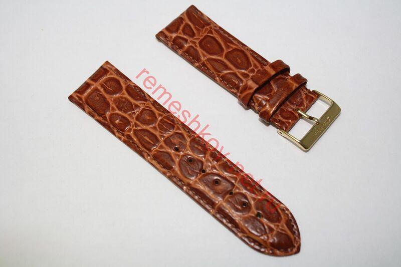 Ширина: 24мм, застежка 22 мм. Длина: М (стандартный). Цвет: Коричневый. С строчкой. Цвет застёжки: Желтая. Кожа телёнка.