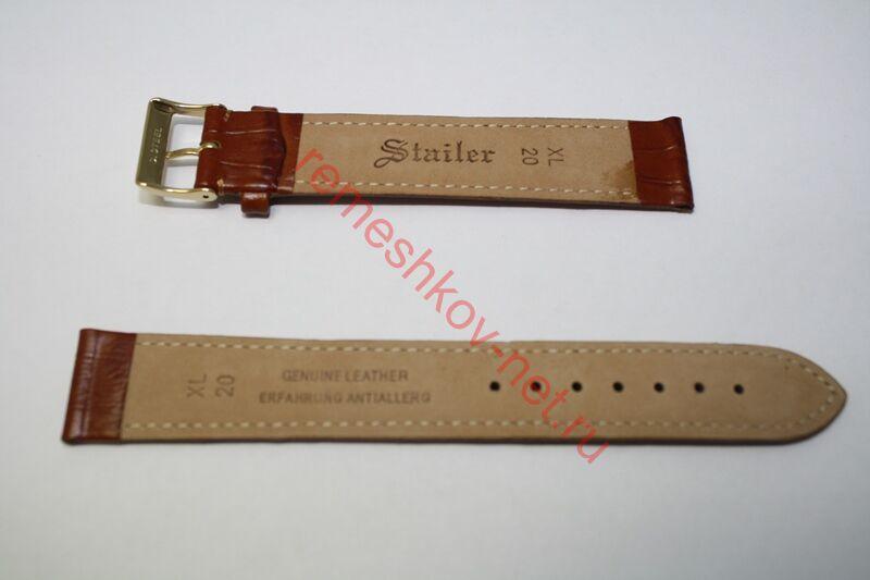 Ширина: 20мм, застежка 18 мм. Длина: XL (длинный). Цвет: Коричневый. С строчкой. Цвет застёжки: Желтая. Кожа телёнка. Имитация аллигатора.