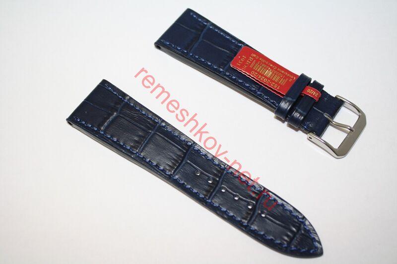 Ширина: 24мм, застежка 20 мм. Длина: М (стандартный) Цвет: Темно-синий. С строчкой в тон ремешка. Цвет застёжки: Белая. Имитация аллигатора. Ремешок выполнен из натуральной кожи телёнка.