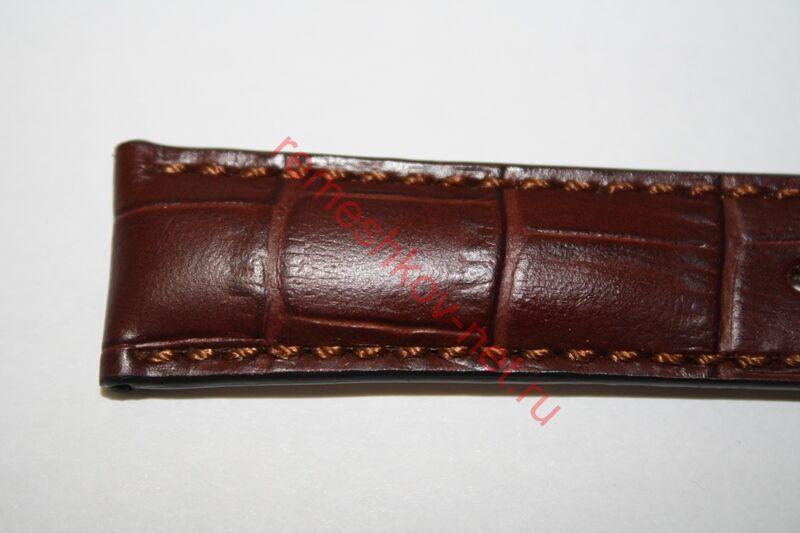 Ширина: 20мм, застежка 18 мм. Длина: М (стандартный) Цвет: Темно- коричневый. С строчкой в тон ремешка. Цвет застёжки: Белая. Имитация аллигатора. Ремешок выполнен из натуральной кожи телёнка.