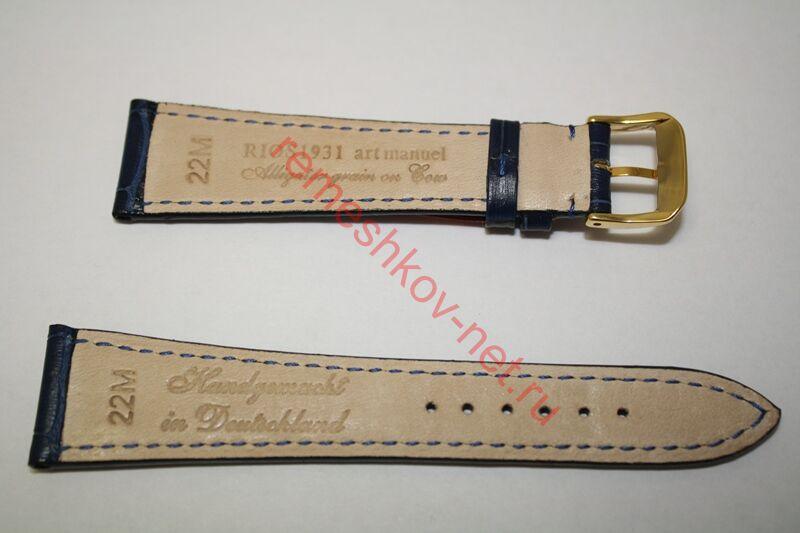 Ширина: 20мм, застежка 16 мм. Длина: М (стандартный) Цвет: Темно-синий. С строчкой. Цвет застёжки: Желтая. Имитация аллигатора. Ремешок выполнен из натуральной кожи телёнка.