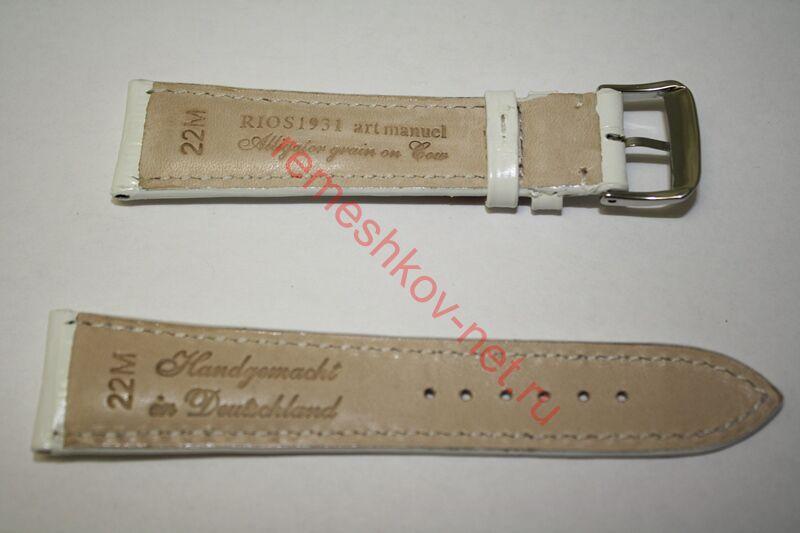 Ширина: 22мм, застежка 18 мм. Длина: М (стандартный) Цвет: Белый. С строчкой в тон ремешка. Цвет застёжки: Белая. Имитация аллигатора. Ремешок выполнен из натуральной кожи телёнка. А также в наличии размеры: L (удлинённый),и XL (длинный).