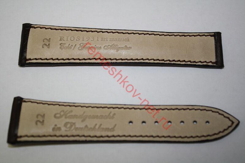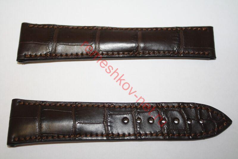 Ширина: 22мм, застежка 18 мм. Цвет: Темно-коричневый.С строчкой в тон ремешка. Ремешок под клипсу. Ремешок из натуральной кожи аллигатора.Технология его изготовления очень трудоёмкая, применяемая для самых эксклюзивных ремней. Произведено в Германии.